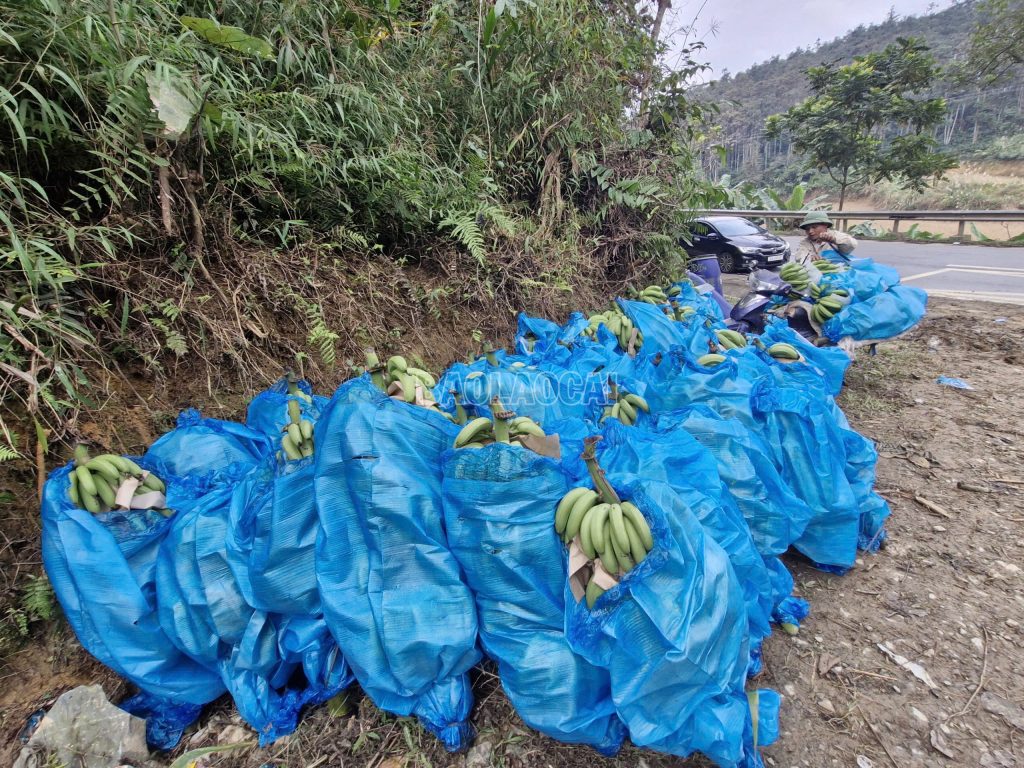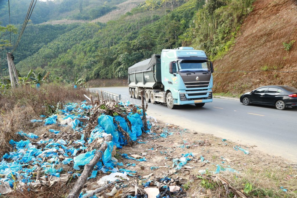 Đang vào chính mùa thu hoạch chuối, nên lượng nilon thải ra mỗi ngày rất lớn. Tại các điểm tập kết hàng, túi nilon vứt thành từng đống, làm xấu cảnh quan vốn có của vùng cao.