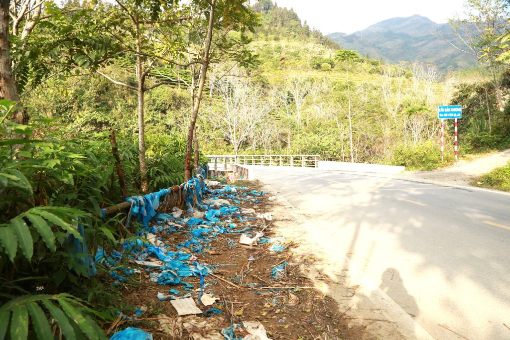 Dọc tuyến Quốc lộ 4D, đoạn từ xã Bản Lầu đến xã Mường Khương, hàng nghìn vỏ túi nilon bọc chuối bị vứt ngổn ngang.