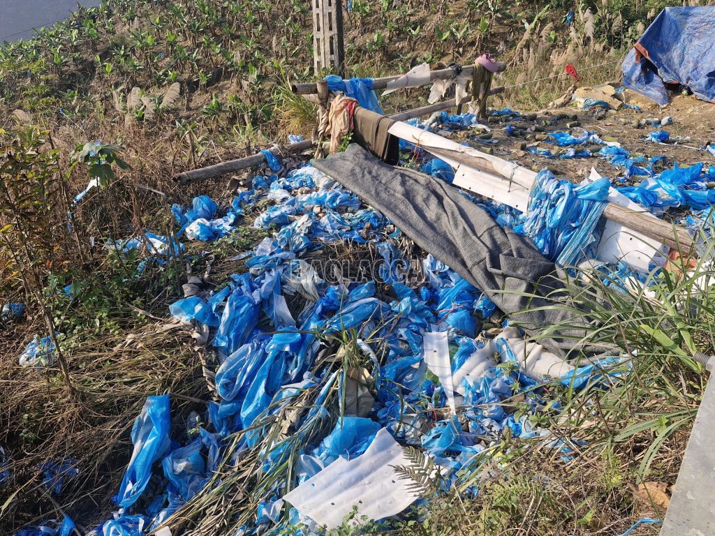 Tình trạng này không phải mới diễn ra. Những lớp nilon cũ bám đầy bùn đất và bạc màu theo thời gian nằm xen lẫn với lớp nilon mới, minh chứng cho việc thiếu các biện pháp thu gom và xử lý dứt điểm từ lâu nay.